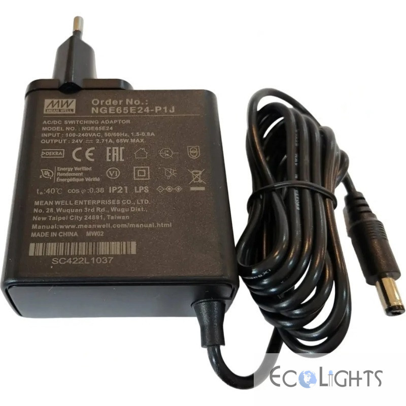 Zástrčkový napájací zdroj 24V 65W Mean Well NGE65E24-P1J