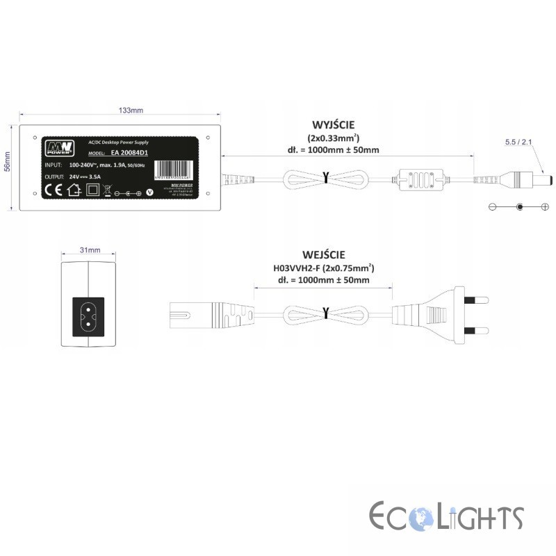 Desktop napájací zdroj 24V 84W MWPower EA20084D1