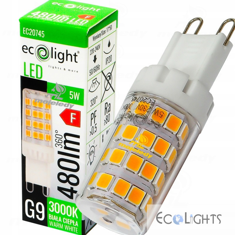 G9 LED 5W 480Lm Warm White AC220/240V ecolights