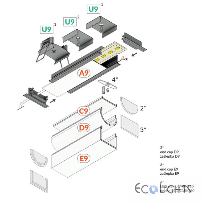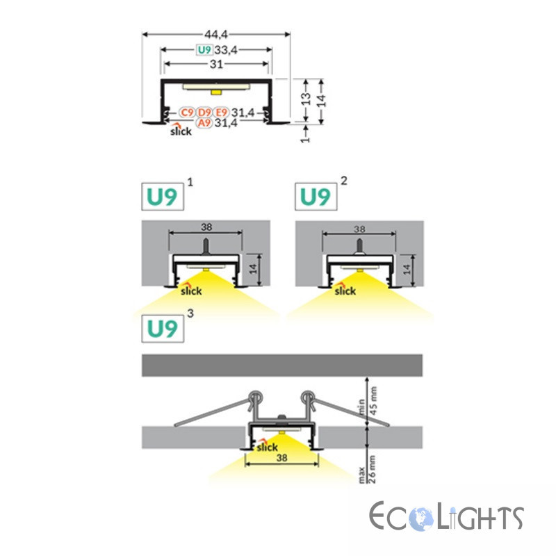 Hliníkový profil pre LED pásy VARIO30-06 zápustný - ELOX