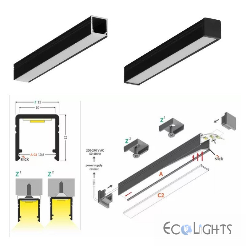 Hliníkový profil pre LED pásy SMART10 (12x12mm) - čierny