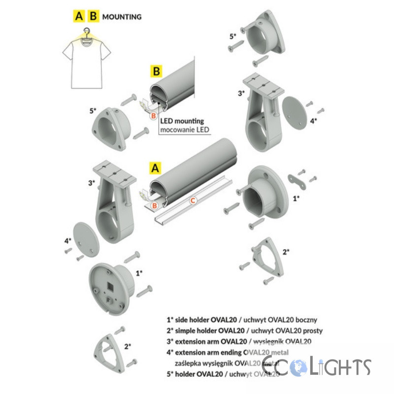 Hliníkový profil pre LED pásy OVAL20 (šatníková tyč) - ELOX