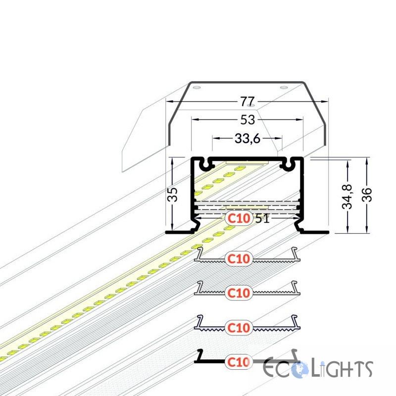 Hliníkový profil pre LED pásy PHIL-C10 - zápustný - ELOX