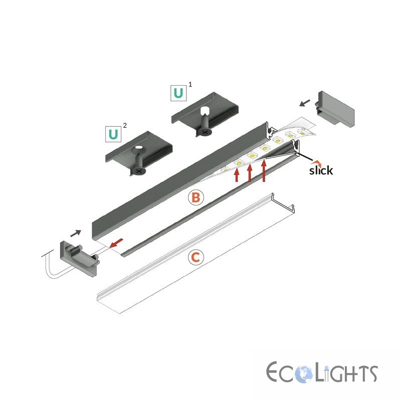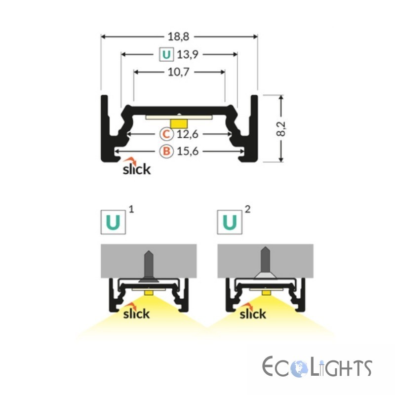 Hliníkový profil pre LED pásy SURFACE10.v2 (18,8x8,2mm) - biely