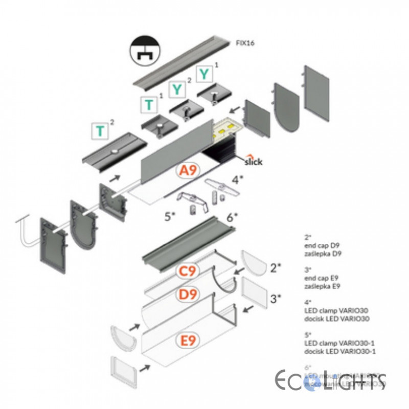 Hliníkový profil pre LED pásy - konštrukčný VARIO30-02 Black 2m-tyč
