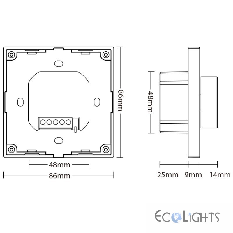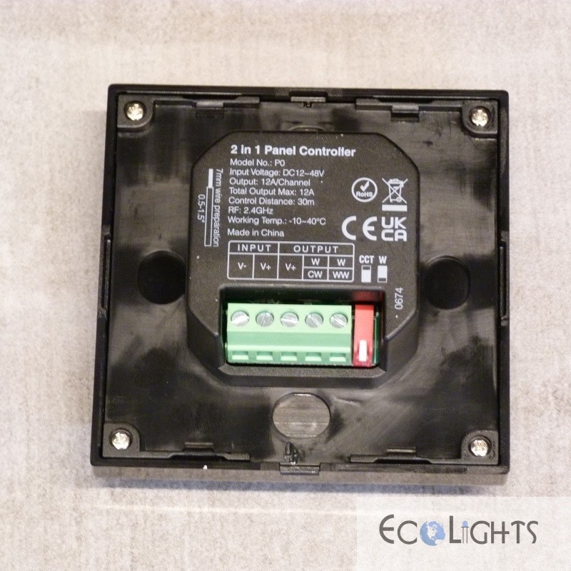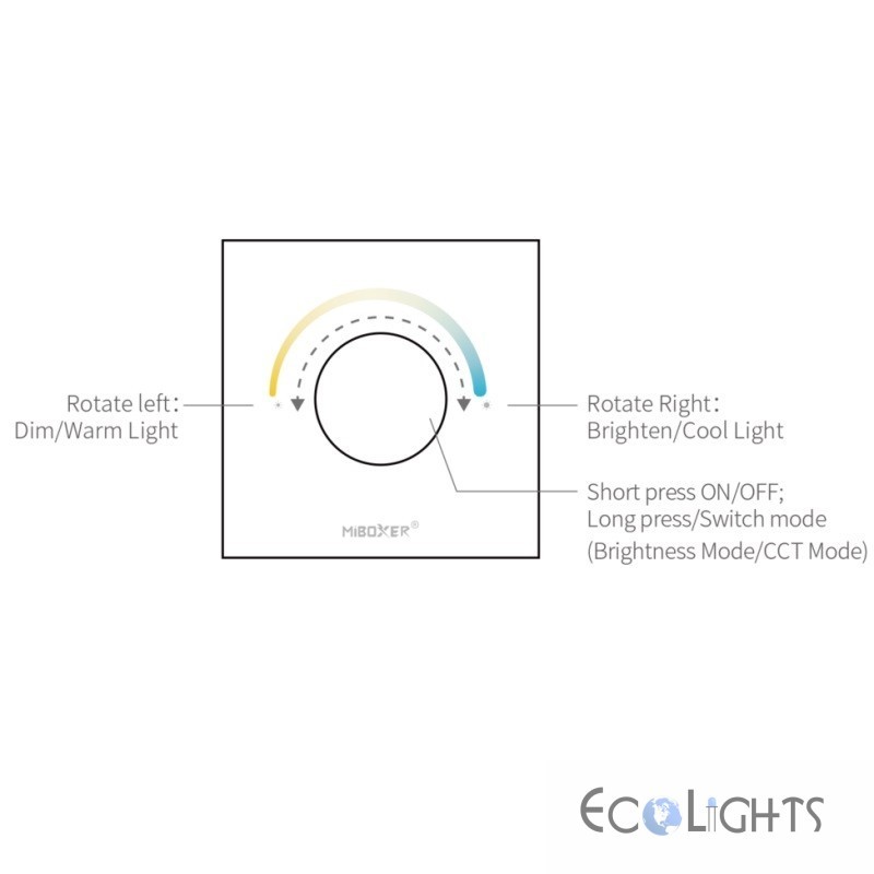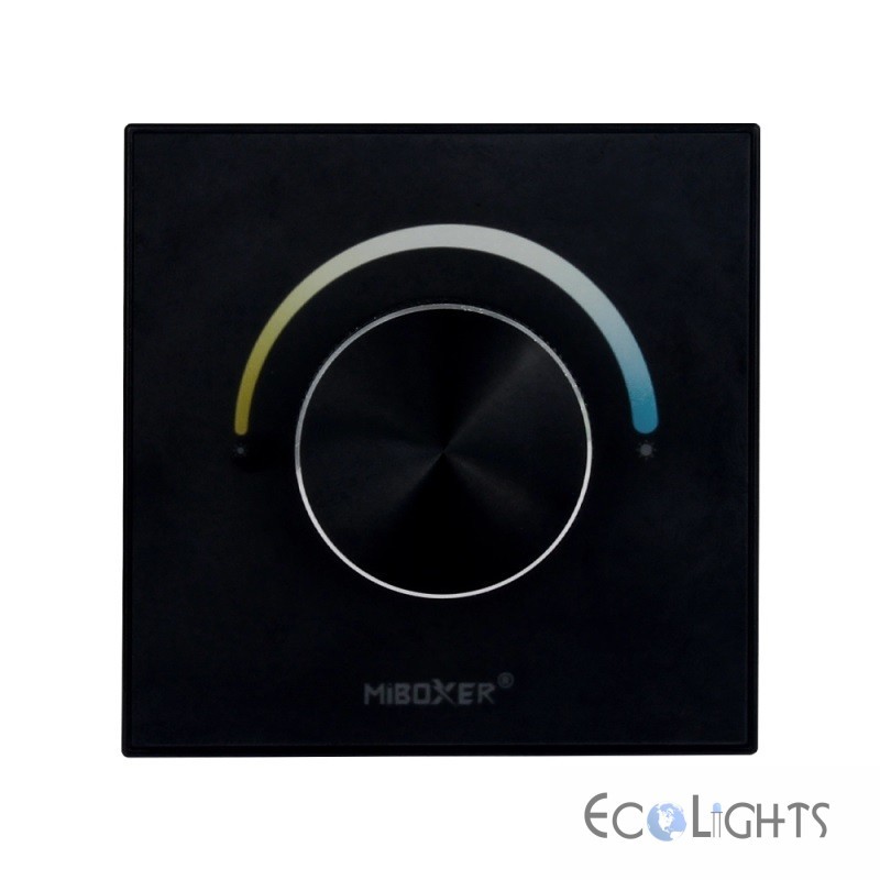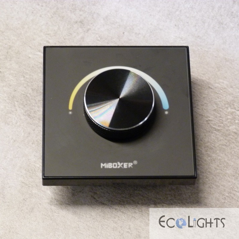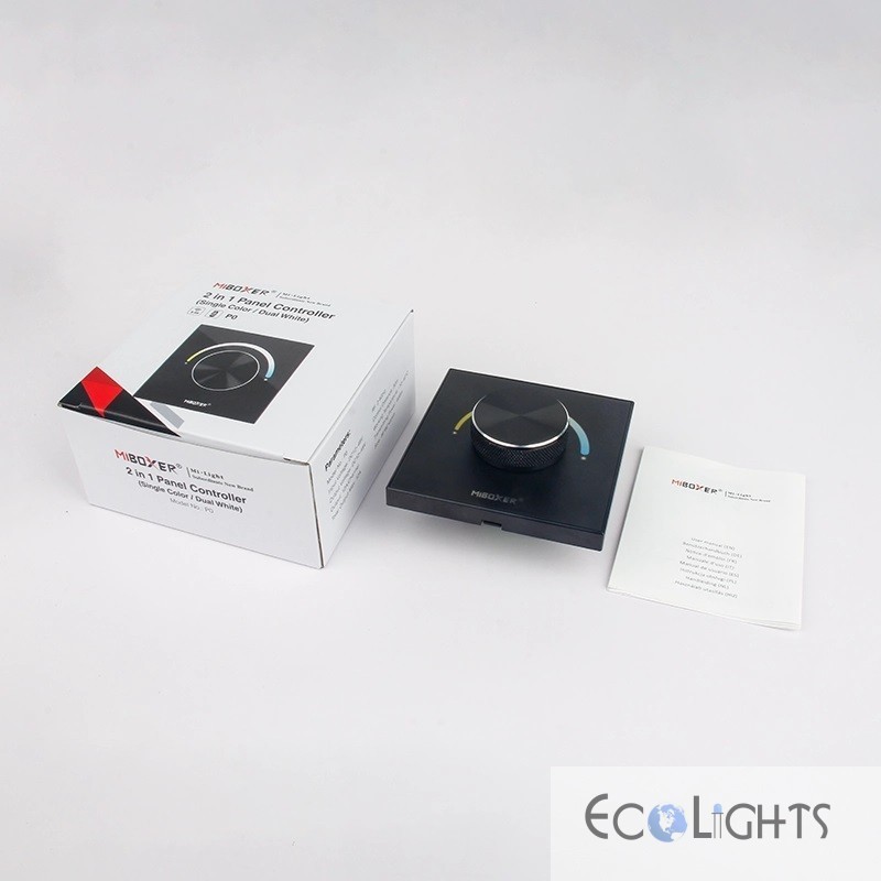 - Nástenný ovládač MiLight (MiBoxer) P0-B umožňuje plynulé stmievanie (zmenu úrovne jasu svetla) a nastavenie teploty bielej farby svetla (CCT-ovládanie teploty svetla)