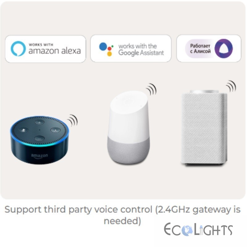 - Podpora Alexa, Google Assistant, Yandex Alice, Tmall Genie, Xiaodu, Xiaoai (vyžaduje sa brána 2.4G)