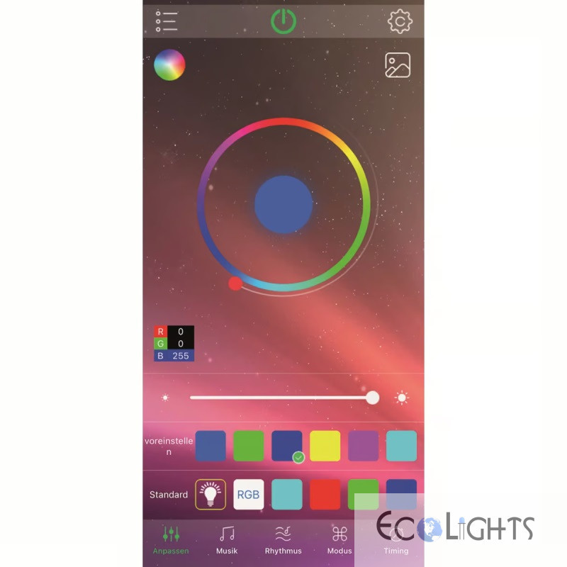 Rôzne funkcie (farebný gradient, stroboskop, stmievanie, ovládanie zvuku a ďalšie) a farby sú prístupné prostredníctvom diaľkového ovládača a aplikácie. Aplikácia ponúka množstvo funkcií, ako je časovač, výber farieb, ovládanie zvuku a ďalšie.