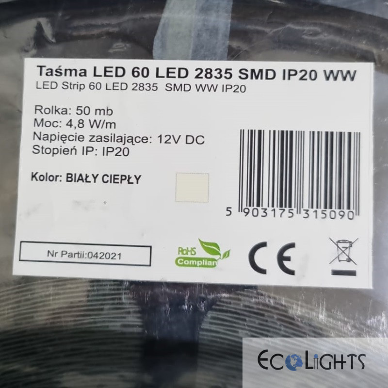 LS 60LED SMD2835 4,8W 250Lm Warm White 12V BERGE-50m