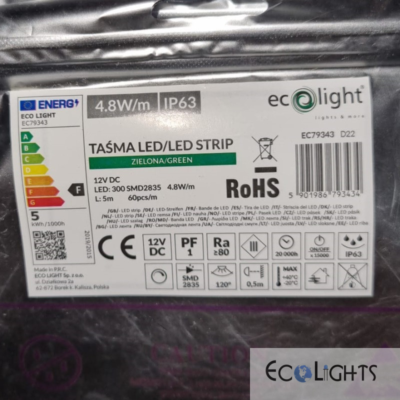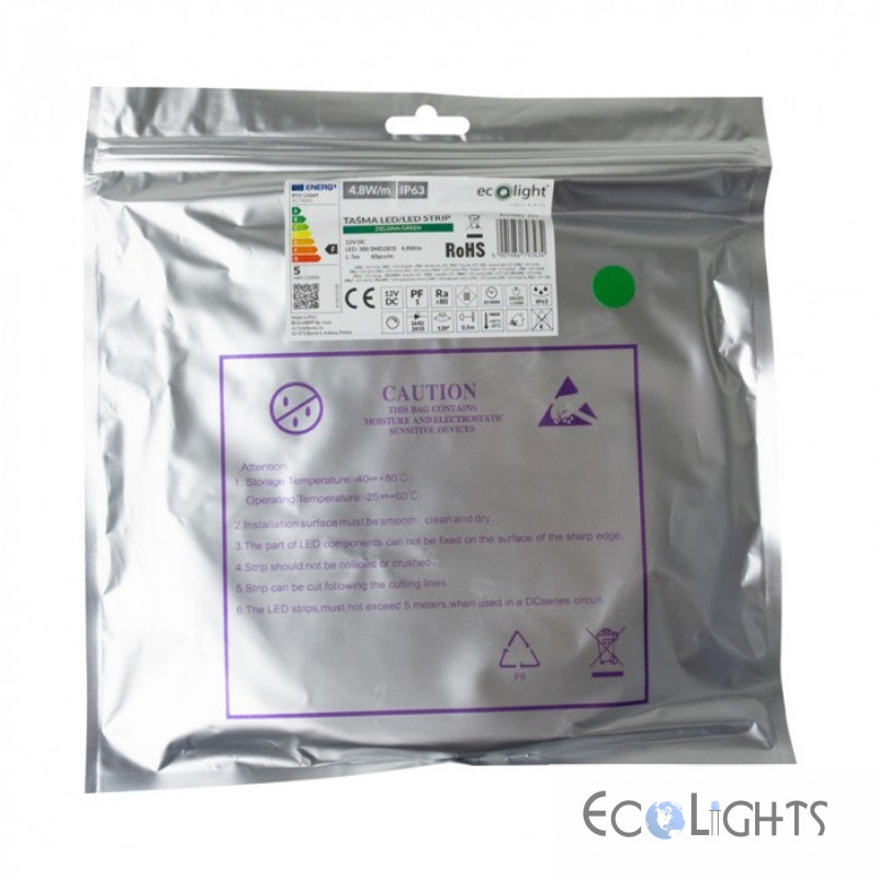 LS 60LED SMD2835 4,8W 150Lm GREEN 12V IP63 (by drip gum) Ecolight 8mm