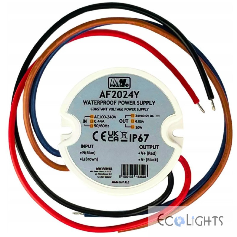 LED napájací zdroj 24V-20W IP67 MW-AF2024Y