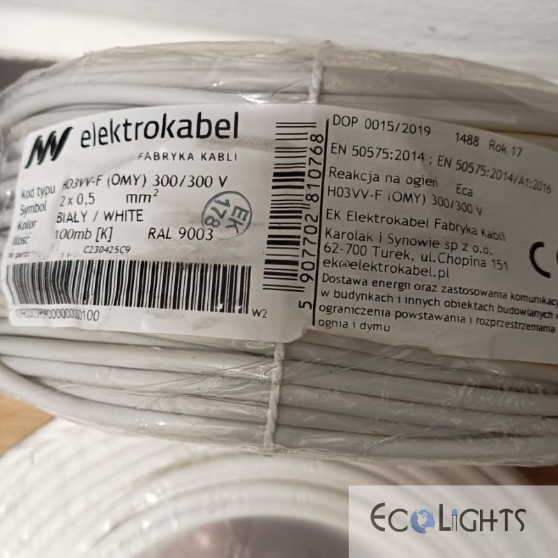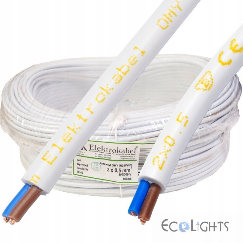 Kábel elek. H03VV-F (OMY) 2x0,5mm² 300/300V biely okrúhly