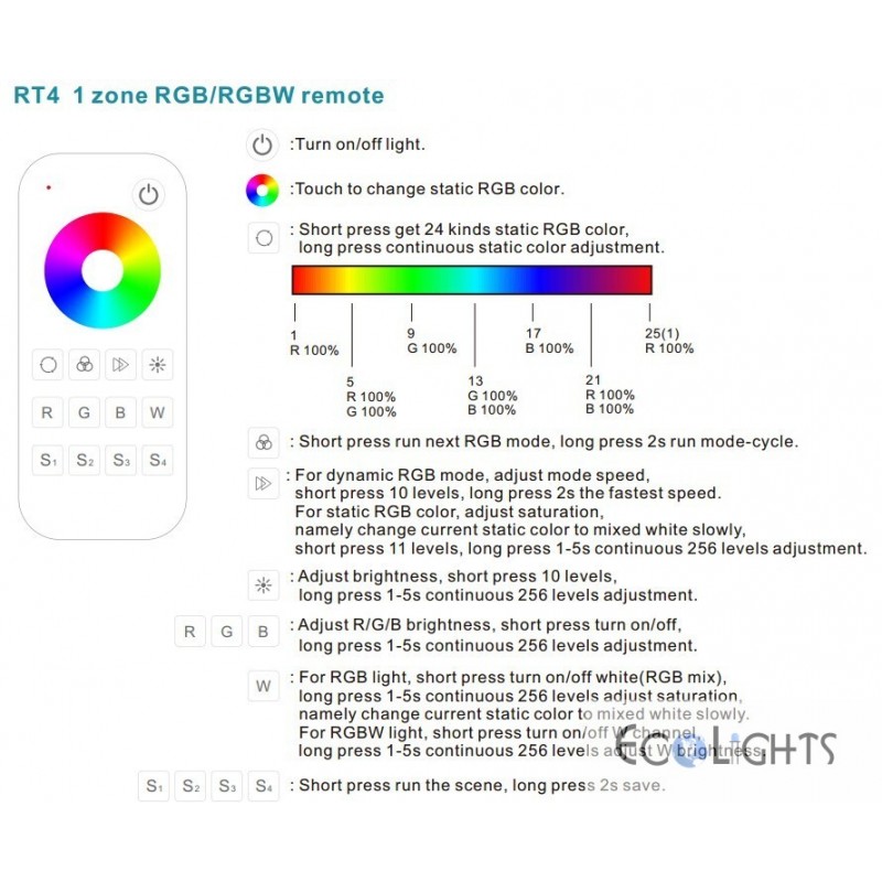 Diaľkový ovládač pre RF prijímače RGB/RGBW - 1 zónový SKD-RT4