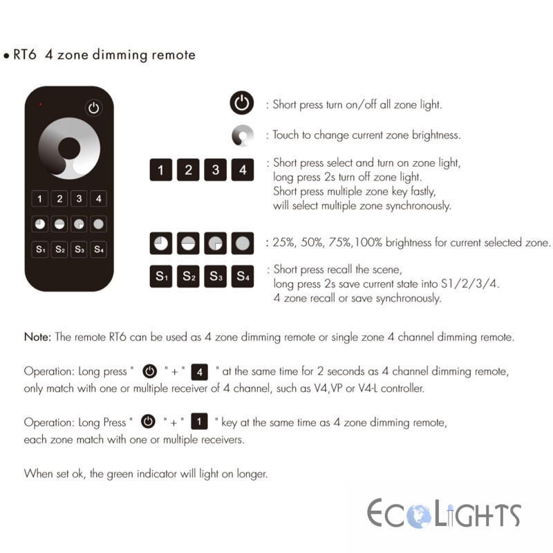 Diaľkový ovládač pre RF prijímače stmievania 4-zónový SKYDANCE RT6